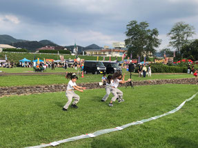 キラキラした笑顔の小さなダンサー達が屋外の広場で音楽に乗せて披露してくれます。