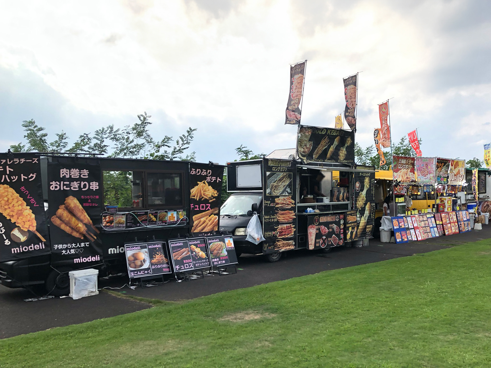 100台以上のキッチンカーが並び色々な食べ物、飲み物が楽しめます。